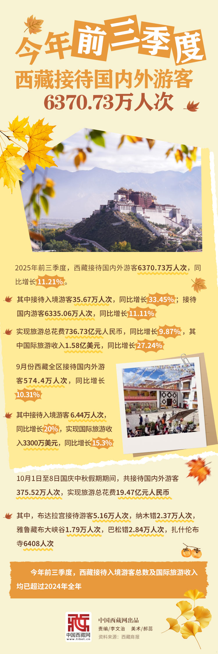 海報(bào)|今年前三季度 西藏接待國內(nèi)外游客6370.73萬人次