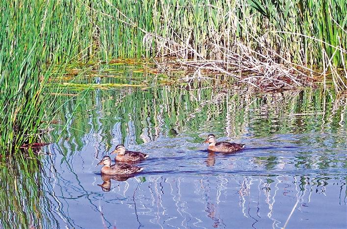 夏日的拉魯濕地美如畫。這是野鴨在拉魯濕地的水面上游弋。記者 洛?!z
