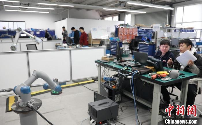 人工智能讓中國(guó)制造業(yè)從“追趕者”變身“領(lǐng)跑者”。圖為中科新松的工作人員正在對(duì)機(jī)器手臂進(jìn)行位置標(biāo)定?!埡鄠?攝