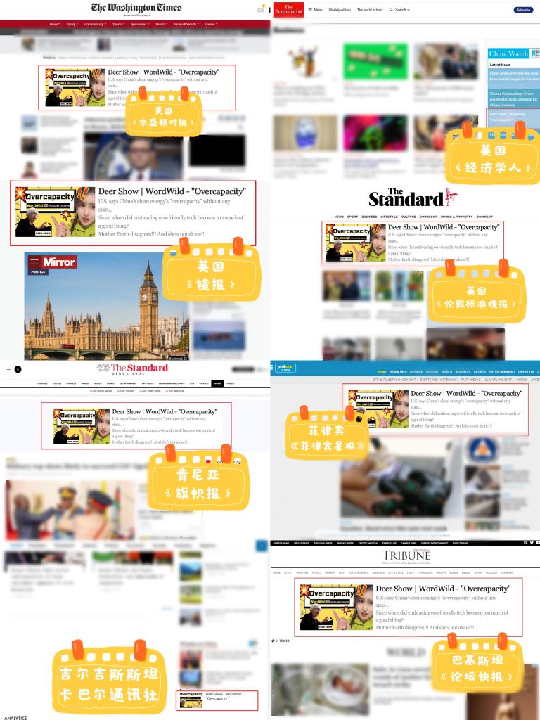 節(jié)目播出后,海外社交媒體瀏覽量突破百萬,被美國(guó)《華盛頓時(shí)報(bào)》、英國(guó)《鏡報(bào)》《倫敦標(biāo)準(zhǔn)晚報(bào)》《經(jīng)濟(jì)學(xué)人》、巴基斯坦《論壇快報(bào)》、菲律賓《星報(bào)》、肯尼亞《旗幟報(bào)》、吉爾吉斯斯坦卡巴爾通訊社等多家境外主流媒體轉(zhuǎn)載。