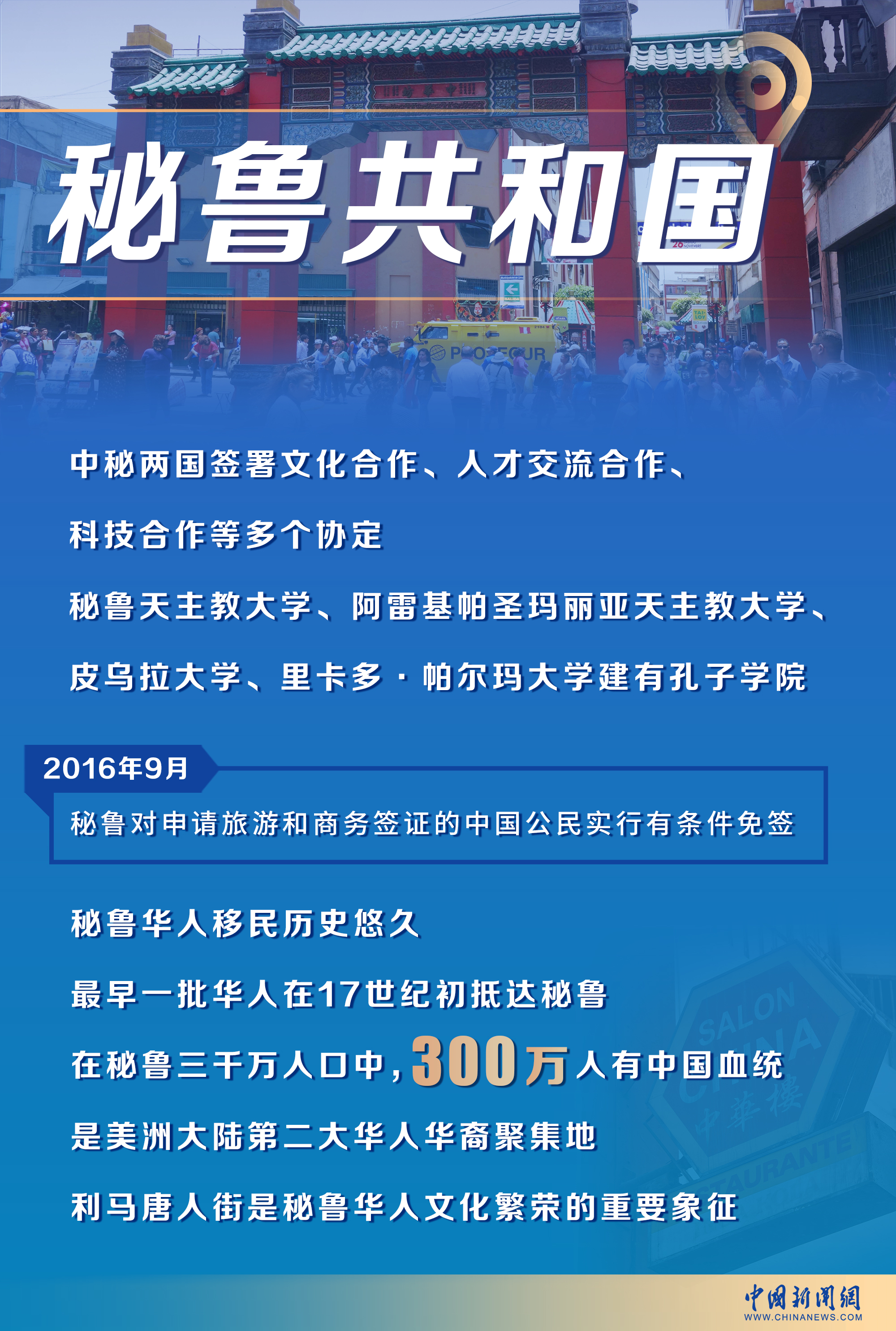 值得一提的是,秘魯是美洲華人移民歷史最悠久的國(guó)家之一。早在17世紀(jì)初,便已有華人抵達(dá)秘魯首都利馬。在秘魯?shù)娜f(wàn)人口中,有三百萬(wàn)人有著中國(guó)血統(tǒng),是美洲大陸僅次于美國(guó)的第二大華人與華裔聚集地。