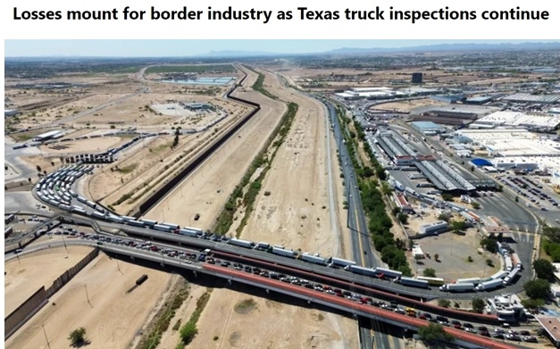 近日,為應(yīng)對近期大規(guī)模移民潮,美國得克薩斯州政府在美墨邊境重新設(shè)置了隨機檢查站,宣布對進入美國的貨運卡車進行額外安全檢查,造成卡車嚴重擁堵。