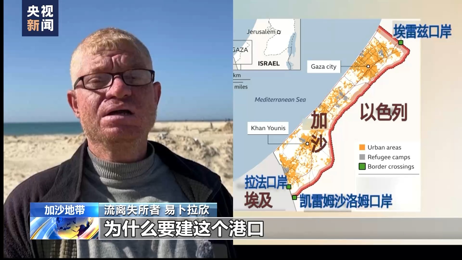 加沙地帶流離失所者 易卜拉欣:我們有凱雷姆沙洛姆口岸,有拉法口岸、有埃雷茲口岸,為什么要建這個港口?為什么是現(xiàn)在?為什么他們幾年前不建這個港口呢?