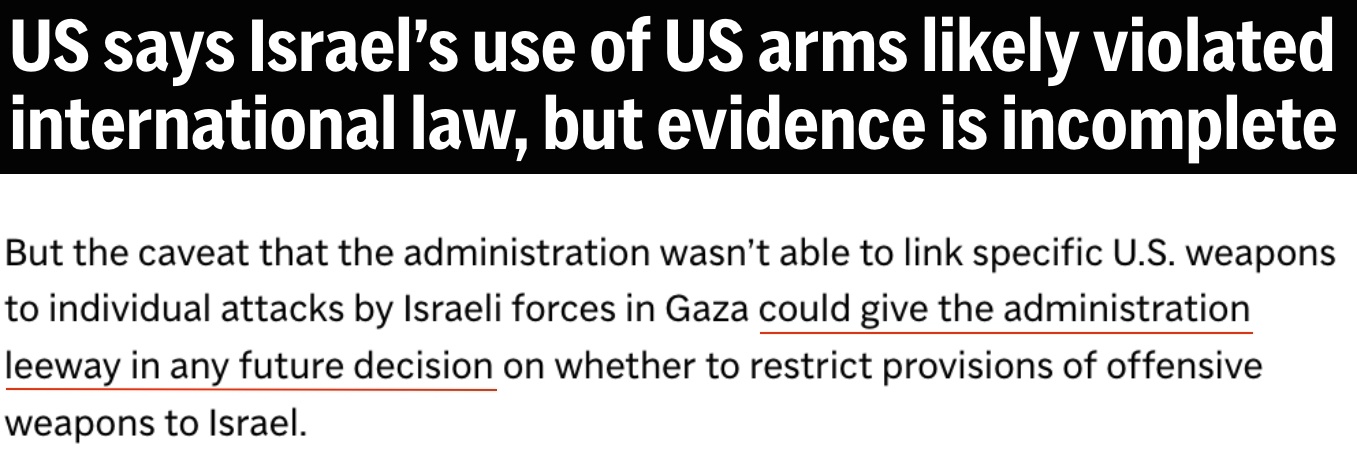 美聯(lián)社的報道直擊要害:是為今后繼續(xù)對以色列提供軍援留下余地。