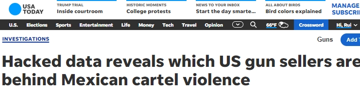 據(jù)《今日美國(guó)報(bào)》網(wǎng)站(USA Today)日前報(bào)道,此前墨西哥軍方情報(bào)遭到大規(guī)模泄露,其中涉及二十年來(lái)首次曝光的與從邊境南部收繳的7.8萬(wàn)支槍有關(guān)的信息,包括與之相關(guān)的美國(guó)槍支商店、走私者以及販運(yùn)槍支的類(lèi)型。
