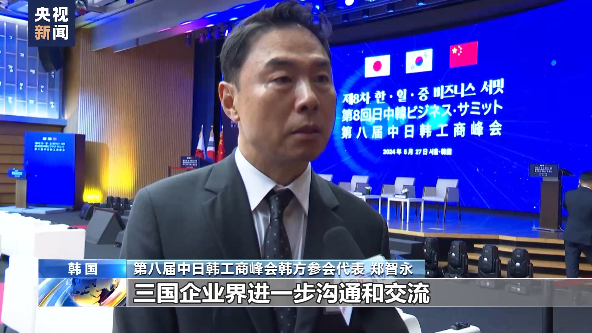 第八屆中日韓工商峰會中方參會代表 張乃文:希望通過這次峰會,我們未來在清潔能源、人工智能、健康醫(yī)療等產業(yè),大家形成合作的共識,充分利用各自的資金、技術、資源等優(yōu)勢,加快形成一次新的合作項目。
