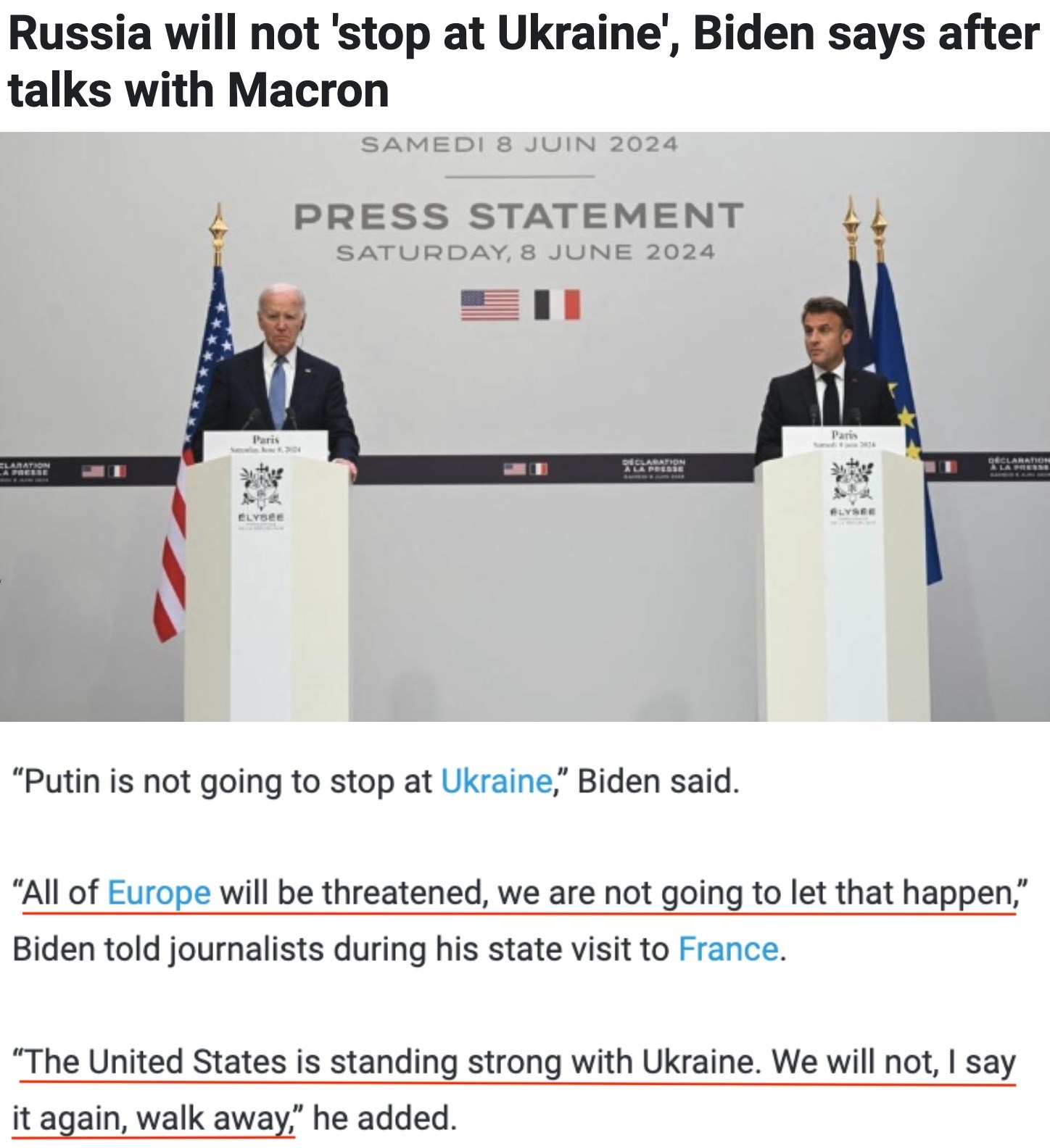 此次為期五天的罕見漫長行程以參加諾曼底登陸80周年紀(jì)念活動(dòng)為由頭,以對(duì)法國的國事訪問為主體,其實(shí)質(zhì)則被認(rèn)為是要通過一場(chǎng)“外交秀”告訴歐洲盟友:我還在,而且會(huì)贏得11月大選,所以烏克蘭的事情我會(huì)管到底。