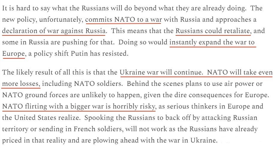 文章警告,美國等國家放寬援烏武器使用限制的新政策在事實(shí)上將北約拉進(jìn)了與俄羅斯的沖突中,并且已經(jīng)接近于對(duì)俄宣戰(zhàn)。這將導(dǎo)致俄烏沖突無限期繼續(xù)下去,最終令北約自身蒙受更多損失。