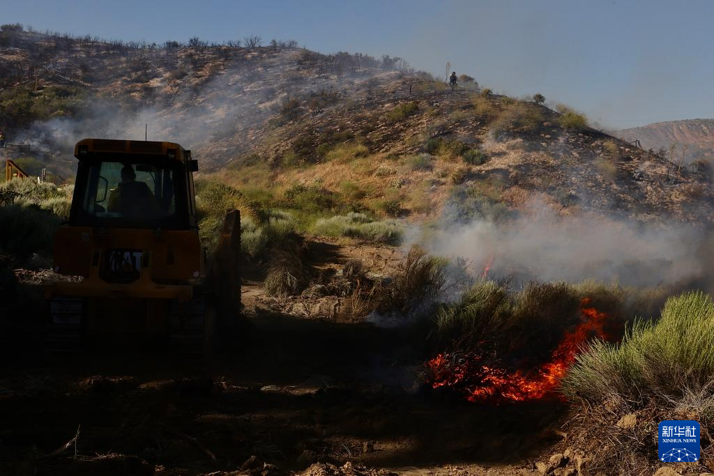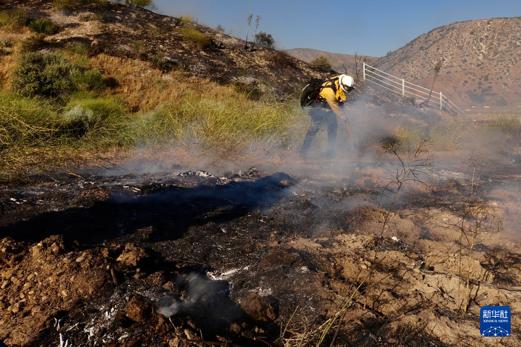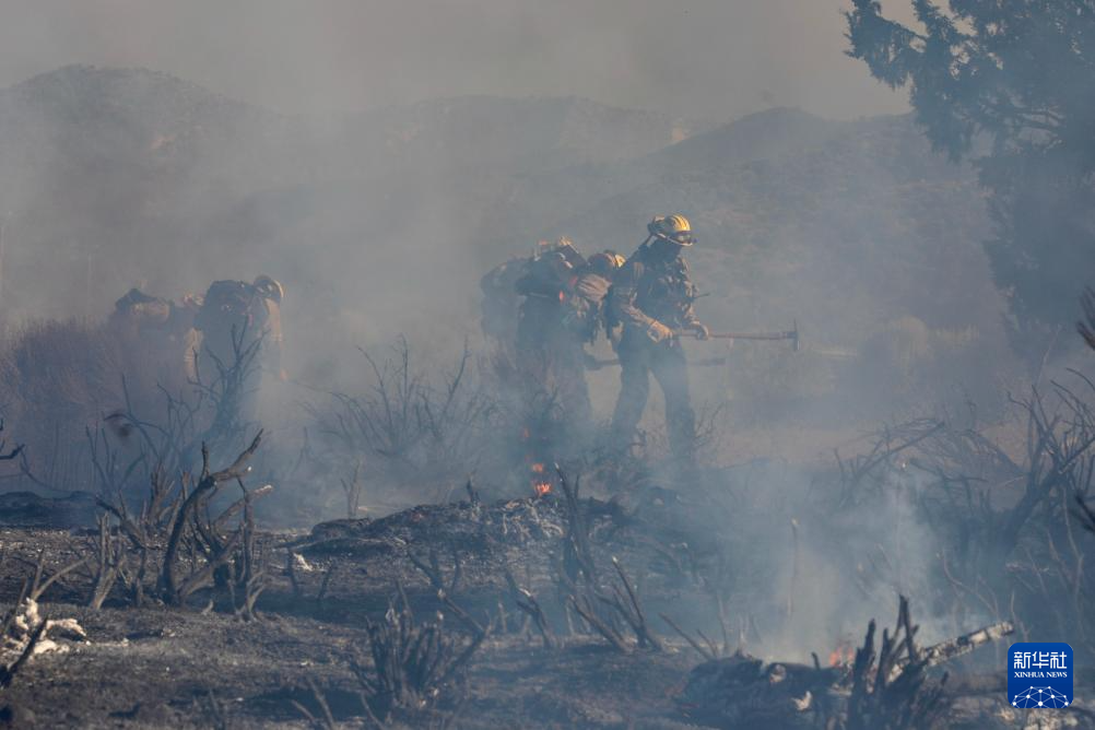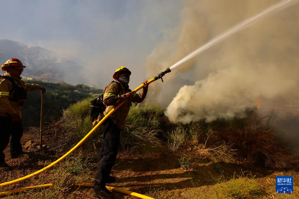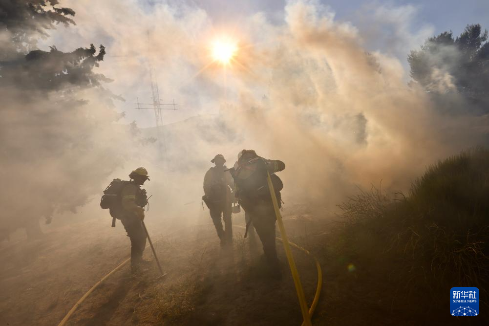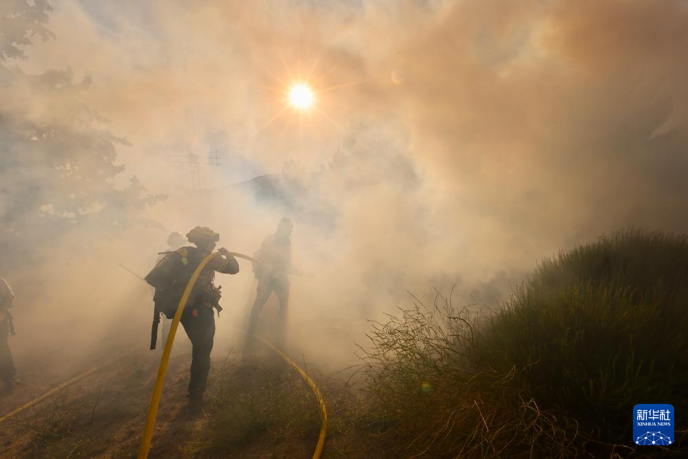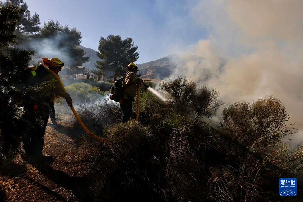 6月16日,消防隊(duì)員在美國加利福尼亞州洛杉磯縣西北部的戈曼地區(qū)進(jìn)行滅火作業(yè)。