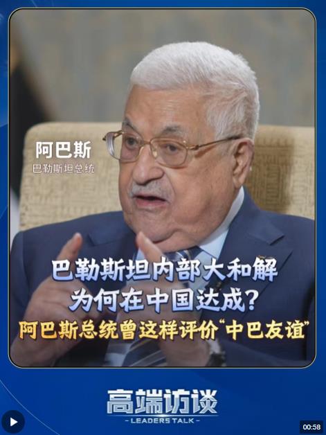 7月23日,巴勒斯坦各派在北京簽署了《關于結束分裂加強巴勒斯坦民族團結的北京宣言》。巴勒斯坦內部大和解,為何是在中國?巴勒斯坦總統(tǒng)阿巴斯接受總臺《高端訪談》專訪時曾這樣評價中巴友誼,來聽聽他怎么說。