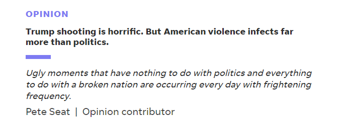 美國前白宮發(fā)言人、政治評論員皮特·西特(Pete Seat)日前在《今日美國報》(USA Today)網(wǎng)站刊文稱,特朗普在賓夕法尼亞州競選集會上遭“未遂刺殺”之后,盡管美國的政界人士、評論家還有普通民眾都在說這起事件是美國“破碎政治的一個跡象”,但這其實是“一個支離破碎的國家所體現(xiàn)出來的癥狀”。