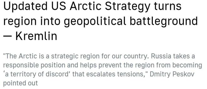 在被問及對(duì)美國這份北極戰(zhàn)略報(bào)告的看法時(shí),俄羅斯總統(tǒng)新聞秘書佩斯科夫指出,美方報(bào)告顯示出對(duì)抗色彩,而俄羅斯一直在北極問題上采取負(fù)責(zé)任的立場(chǎng),"為確保北極不會(huì)成為紛爭和局勢(shì)緊張地區(qū)做出貢獻(xiàn)"。