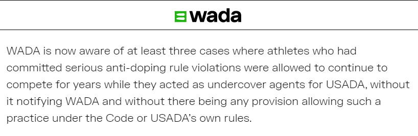 世界反興奮劑機構(gòu)前幾天披露,他們發(fā)現(xiàn)美國常年包庇至少3名嚴(yán)重違規(guī)“嗑藥”的運動員,理由居然是把這些人發(fā)展成了“線人”。這些“線人”整個職業(yè)生涯都在正常參賽和拿獎,自己就是“奉命作弊”,還指望他們抓作弊嗎?