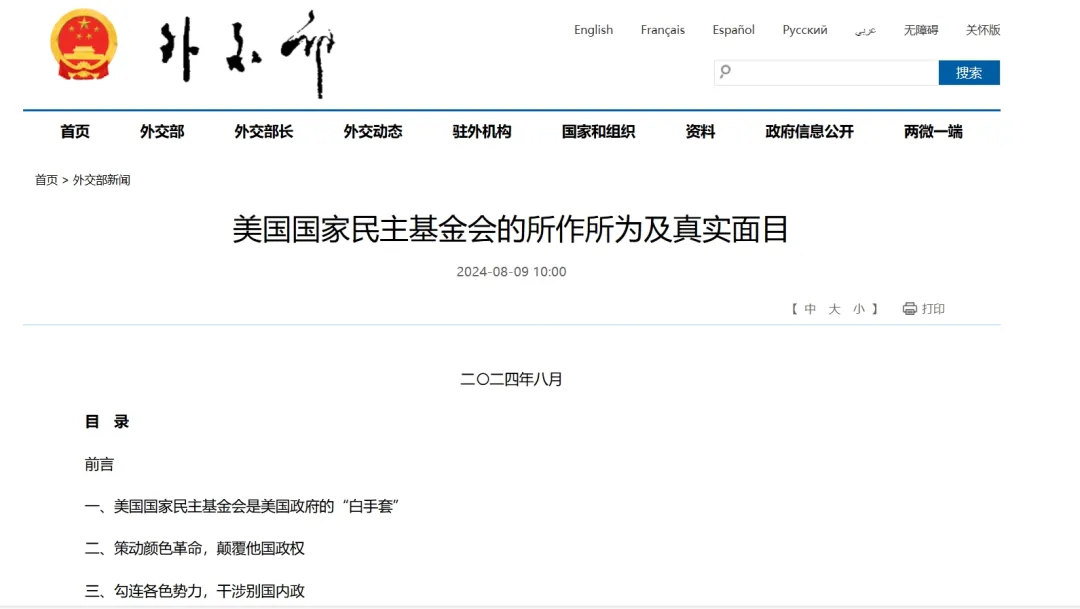 8月9日,中國外交部網站發(fā)布一份重磅報告:《美國國家民主基金會的所作所為及真實面目》。