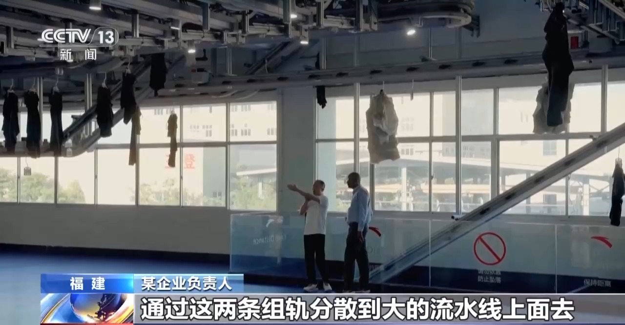 某企業(yè)負(fù)責(zé)人:我們的產(chǎn)品從上面下來,通過這兩條組軌分散到大的流水線上面去。