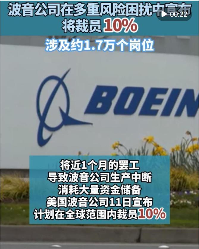 美國波音公司11日宣布,計劃在全球范圍裁員約10%,涉及約1.7萬個崗位。