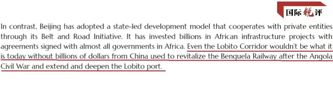 黎文濤認為,美國試圖把“洛比托走廊”包裝成美歐為非洲基建作出的貢獻,完全不符合事實。因為它的核心骨架中國早已搭好,中國才是名副其實的最大貢獻者?!奥灞韧凶呃取惫倬W(wǎng)上也有這樣一段話:“如果沒有中國投入數(shù)十億美元重建本格拉鐵路、擴建洛比托港口,‘洛比托走廊’就沒有當今的模樣?!?/p>