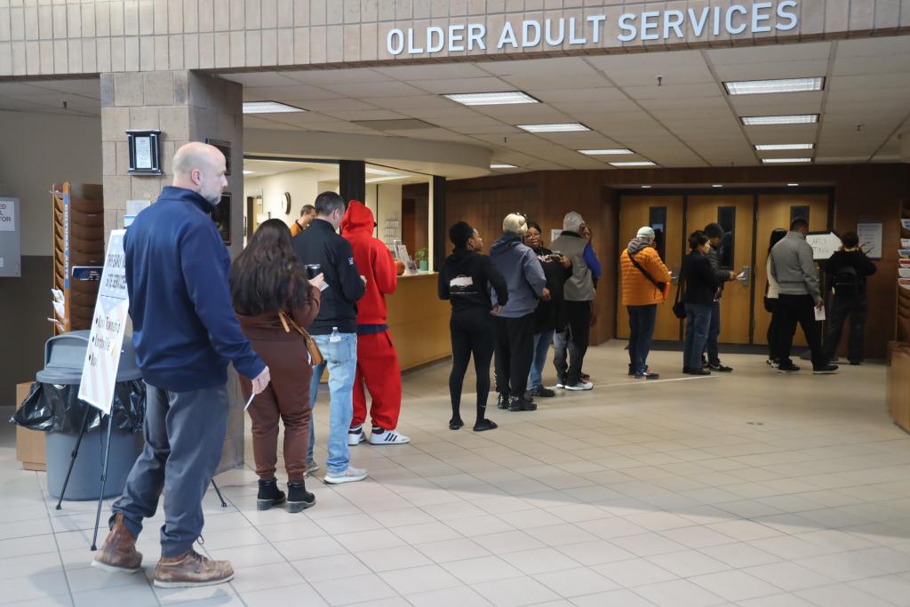 10月28日,在美國(guó)密歇根州奧克蘭縣諾維,選民在投票站排隊(duì)等待參加提前投票。新華社記者 徐劍梅 攝