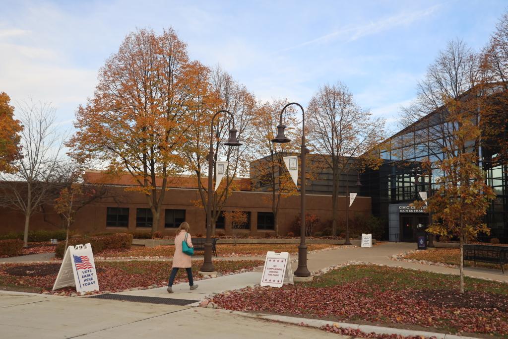 10月28日,在美國(guó)密歇根州奧克蘭縣諾維,一名女子前往投票站參加提前投票。新華社記者 徐劍梅 攝