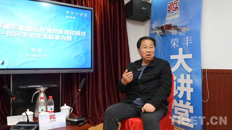 3月27日,四川師范大學(xué)教授、博士生導(dǎo)師孫勇應(yīng)邀做客中國(guó)西藏信息中心“榮豐大講堂”,圍繞《新時(shí)代涉藏形象國(guó)際傳播創(chuàng)新路徑探討——以跨國(guó)民間學(xué)術(shù)交流敘事為例》主題作專題報(bào)告,為提升涉藏國(guó)際傳播效能提供理論支持與實(shí)踐路徑。