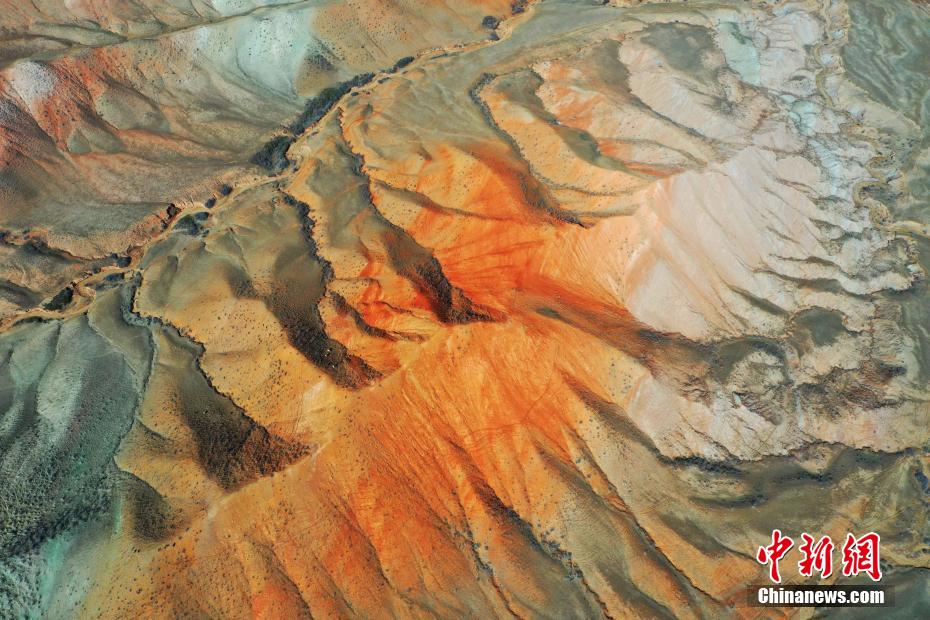 進入四月,新疆昌吉回族自治州百里丹霞多姿多彩,S101公路蜿蜒于群山峻嶺,沿途景色美不勝收,藍天、白云、雪山和丹霞共同組成了一幅水彩畫。駱駝峰、回音谷等景點,栩栩如生、絢爛壯麗。圖為俯瞰新疆昌吉百里丹霞,如水彩畫,令人向往,如癡如醉。
