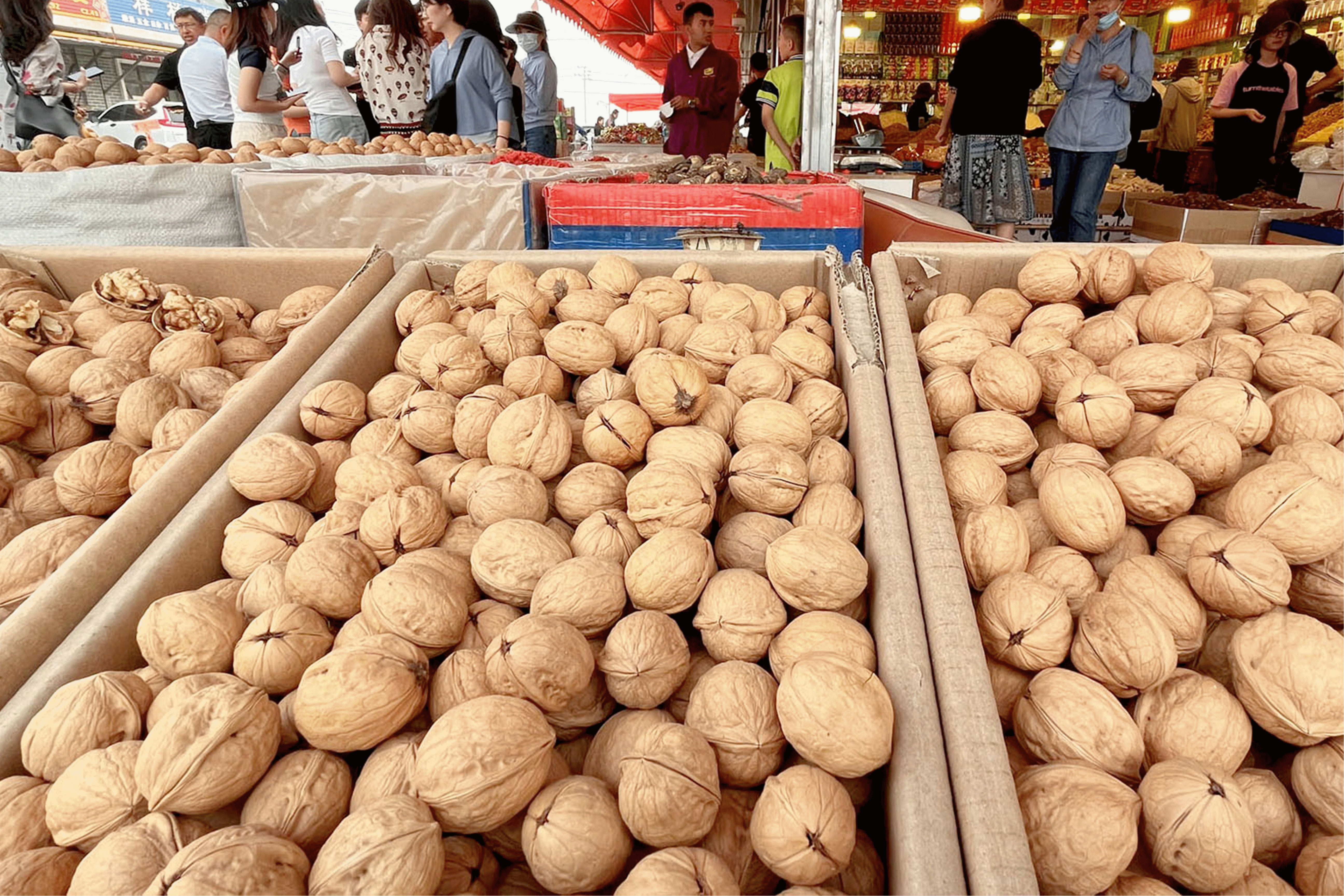 大石峽水利樞紐建設(shè)工地的下游——阿克蘇地區(qū),光照時(shí)間長,晝夜溫差大,素有“中國紅富士之鄉(xiāng)”“中國核桃之鄉(xiāng)”“中國棗園”“中國白杏之鄉(xiāng)”的美譽(yù)。這里季節(jié)性缺水,盛夏時(shí)節(jié)冰川消融時(shí),山洪和融雪疊加,會形成突發(fā)性洪水,但春秋時(shí)節(jié)水少。