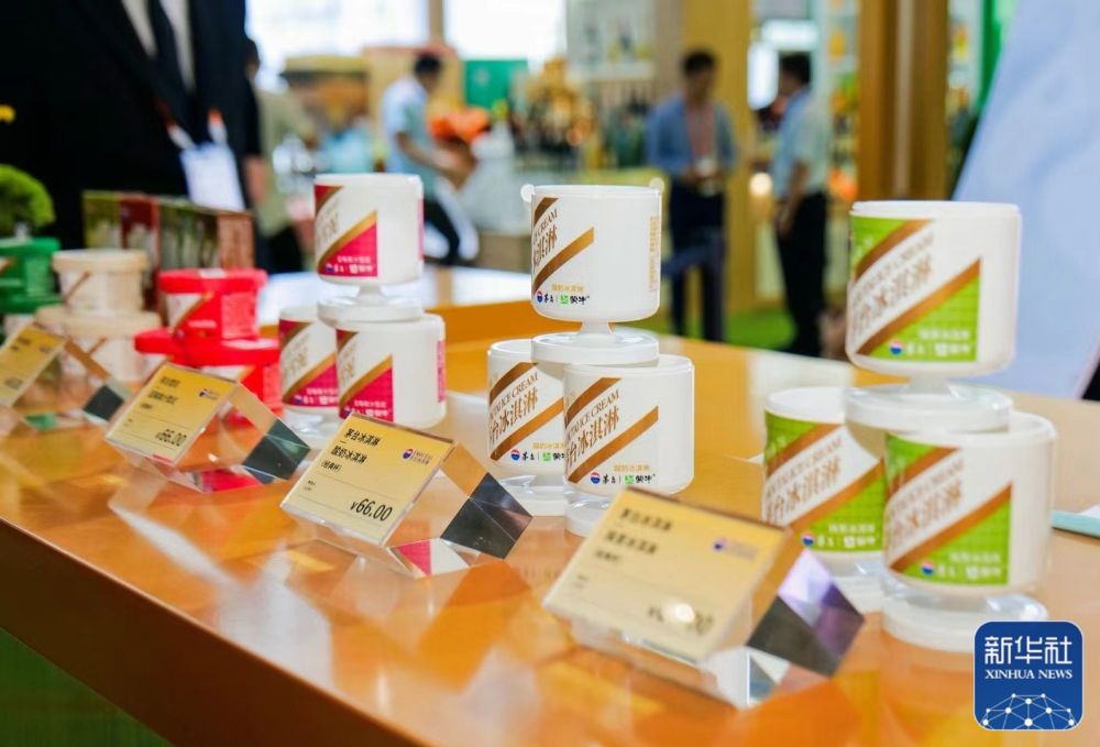 茅臺展區(qū)展示的茅臺冰淇淋。近年來,茅臺不斷推出文創(chuàng)產(chǎn)品,品牌年輕化成效顯著。新華社記者王楚天 攝
