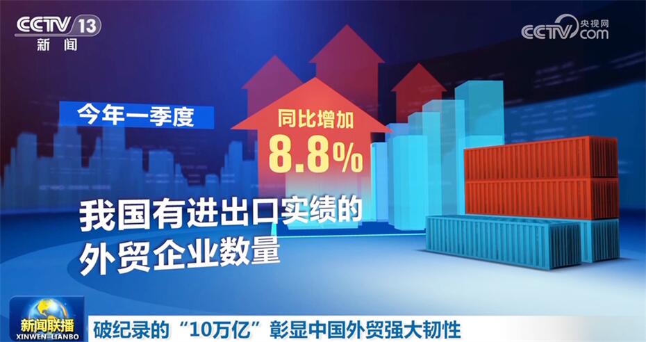 一季度,我國貨物貿易進出口規(guī)模歷史同期首次突破10萬億元,增速創(chuàng)6個季度以來新高。一季度進出口令人欣喜的數(shù)據(jù)彰顯了中國外貿的強大韌性,提振了人們對實現(xiàn)今年經(jīng)濟增長目標的信心。