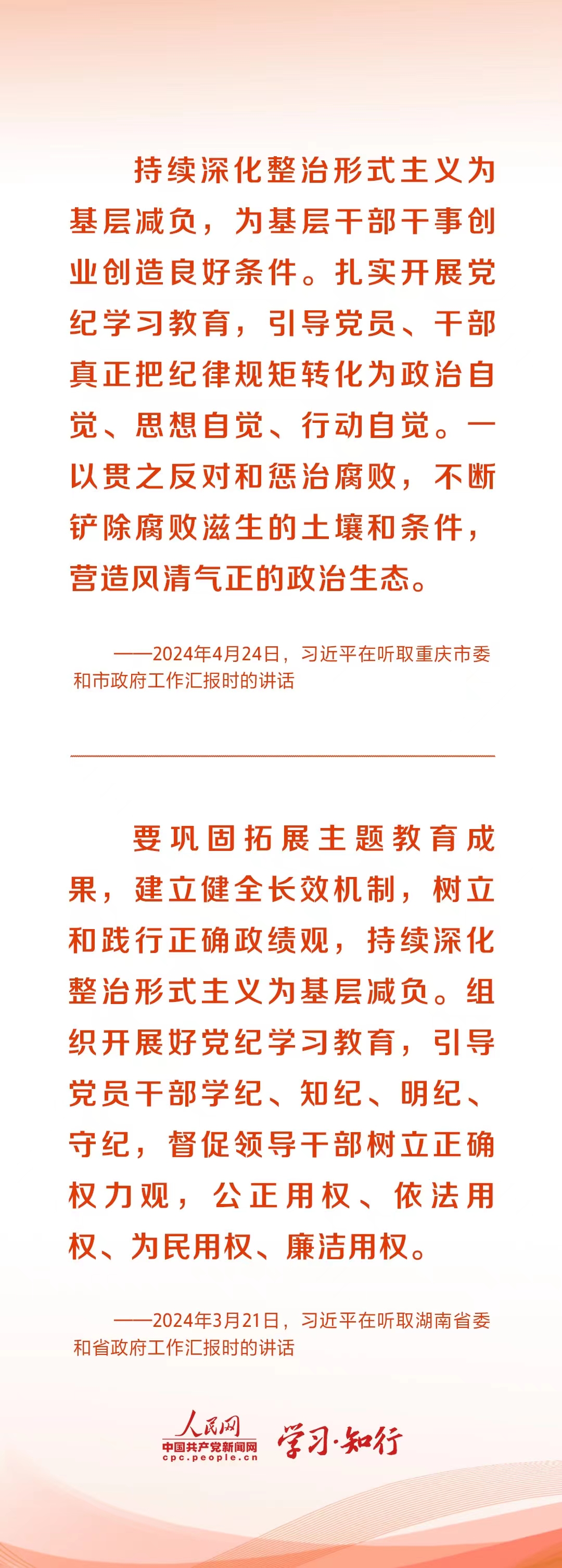 在新時代推動西部大開發(fā)座談會上,習(xí)近平再次明確,“鞏固拓展主題教育成果,抓好黨紀(jì)學(xué)習(xí)教育,持續(xù)整治形式主義為基層減負(fù)?!?/p>