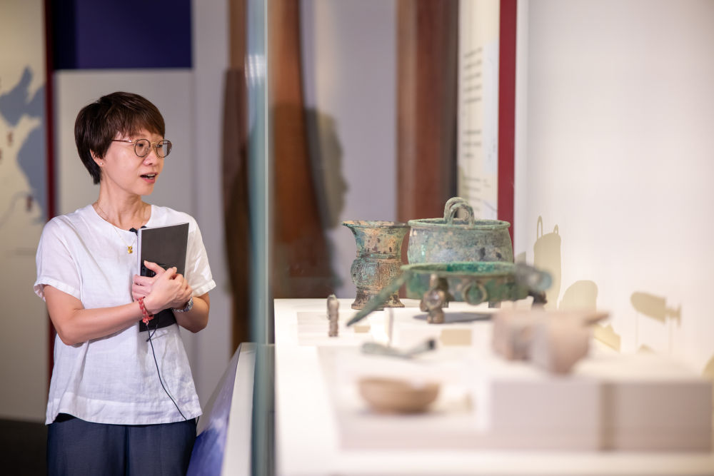 策劃、研究、選品,一年的密切合作為展覽注入巧思:展覽兼具學(xué)術(shù)性與教育性,部分內(nèi)容特意參考香港中學(xué)歷史教材;入選文物涉及多家機(jī)構(gòu),各單位經(jīng)過一番努力才安排好赴港檔期;克服燈光場地等困難,河南團(tuán)隊(duì)還首次為體量龐大的春秋九鼎八簋九鬲拍攝整體大合影,以豐富圖片資料……