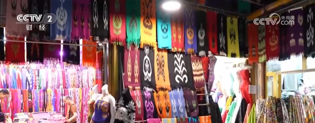 除此之外,本地布料市場也迎來了對艾特萊斯綢和定制成衣感興趣的游客。在這里,一套手工艾特萊斯綢的成衣價(jià)格從幾百元到上千元不等,店家還提供選布料、量身定做、成衣郵寄的一條龍服務(wù)。