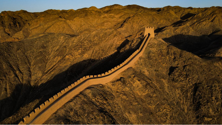 甘肅省嘉峪關(guān)市拍攝的懸壁長城(無人機照片)。新華社記者 陳鐘昊 攝