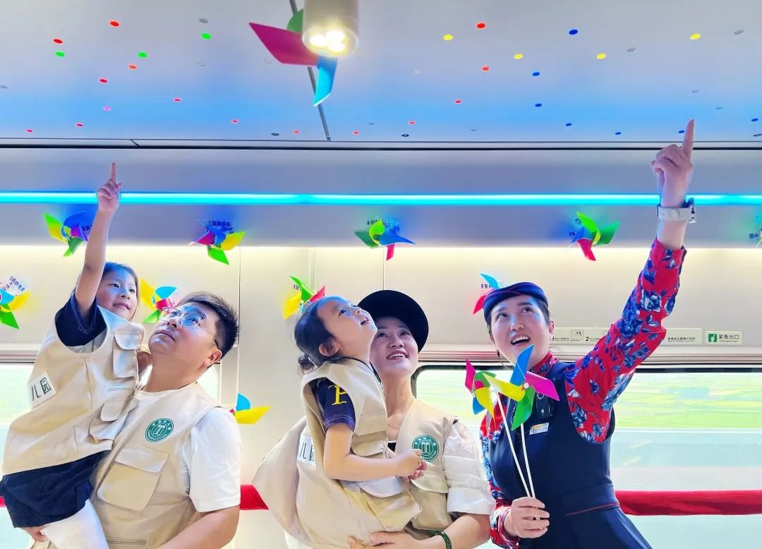 蘭州局集團(tuán)公司在G1876次列車上舉辦“樂在旅途 即刻出發(fā)”主題秀,用錦簇花團(tuán)裝飾列車,乘務(wù)員載歌載舞與旅客熱情互動(dòng),豐富旅客假期出行體驗(yàn)。