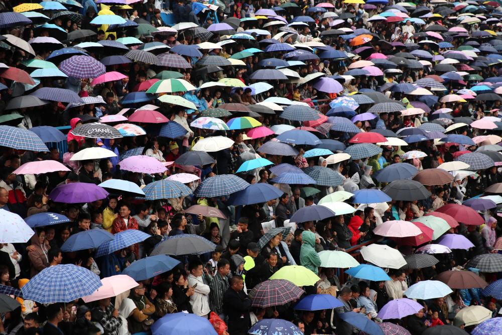5月1日,人們?cè)谫F州省黔東南苗族侗族自治州臺(tái)江縣臺(tái)盤鄉(xiāng)臺(tái)盤村觀看“村BA”球王爭(zhēng)霸賽。新華社發(fā)(余天英 攝)