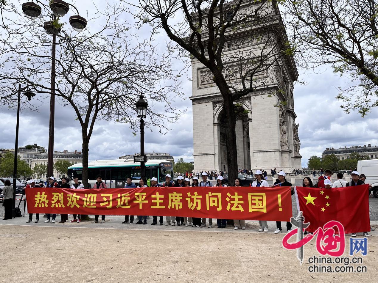 下午5時左右,習(xí)近平主席的車隊終于駛來,人群開始興奮,呼喊聲也逐漸高亢。卿馨月回憶,大家一遍又一遍地呼喊著:“歡迎,歡迎,熱烈歡迎”,不少人的嗓子喊破音了,但情緒卻愈發(fā)亢奮。當(dāng)她看到由4個方陣連接而成的“中國-法國-中國-法國”巨型國旗陣赫然眼前時,她坦言,從未有一刻這么熱愛五星紅旗、從未有一刻為自己是中國人感到如此自豪。