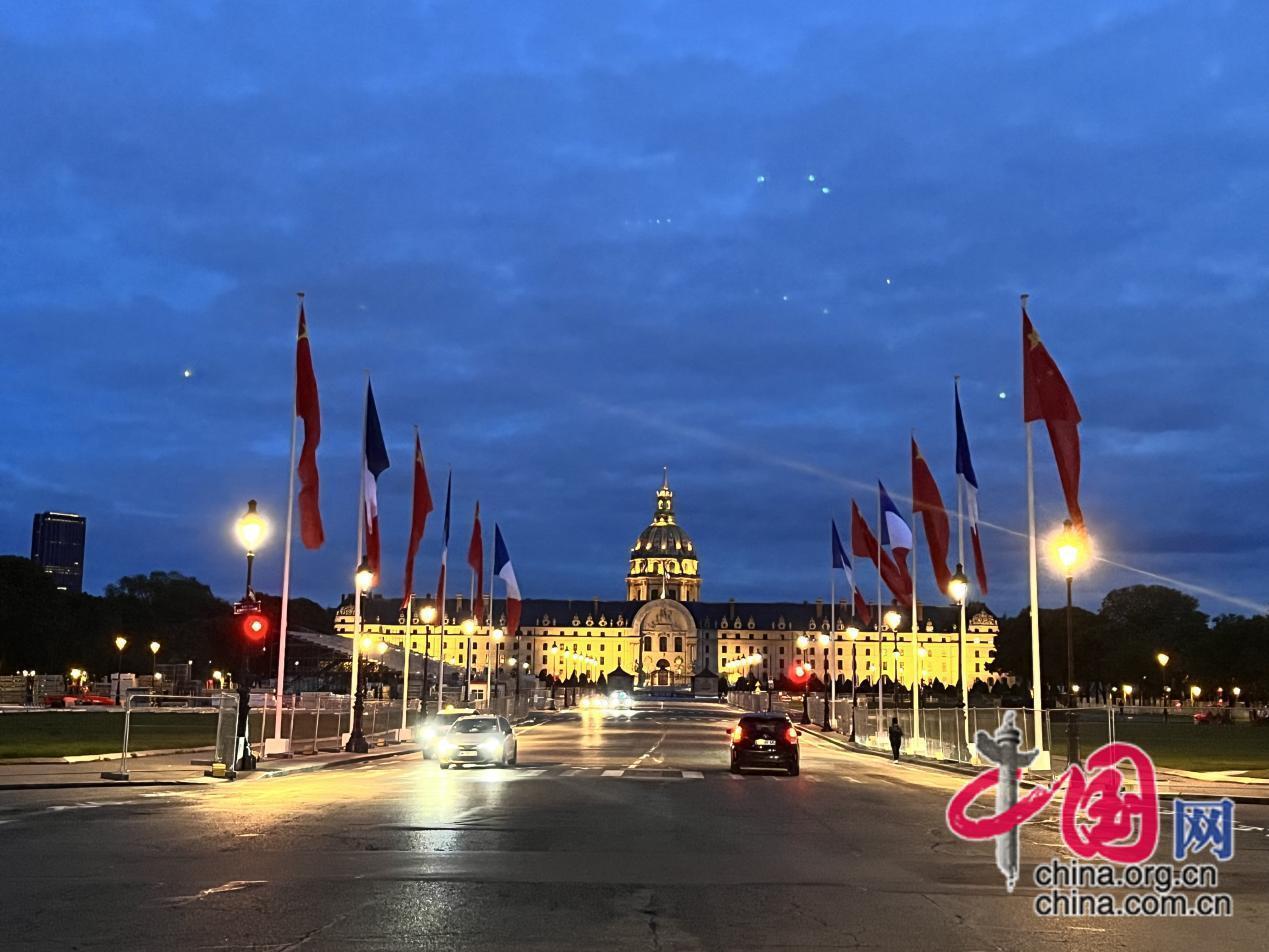 巴黎榮軍院門前掛起中法兩國國旗。受訪者供圖