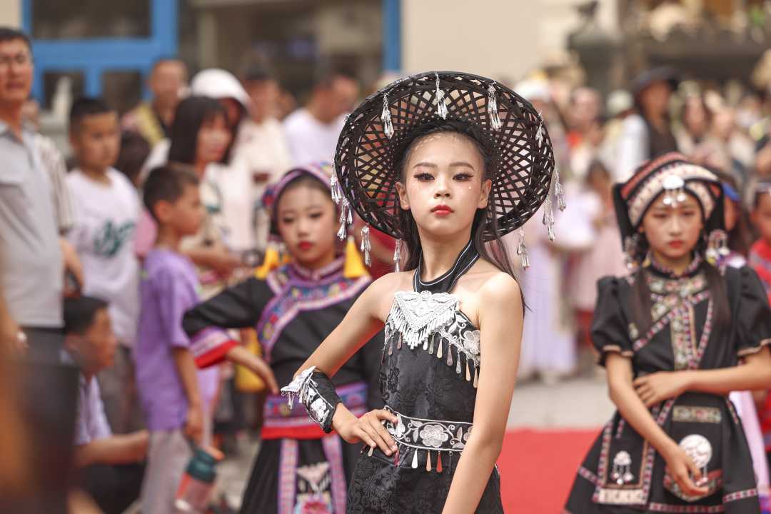 2024年5月19日,演員在庫車市龜茲小巷為游客表演模特秀。袁歡歡攝(中經(jīng)視覺)