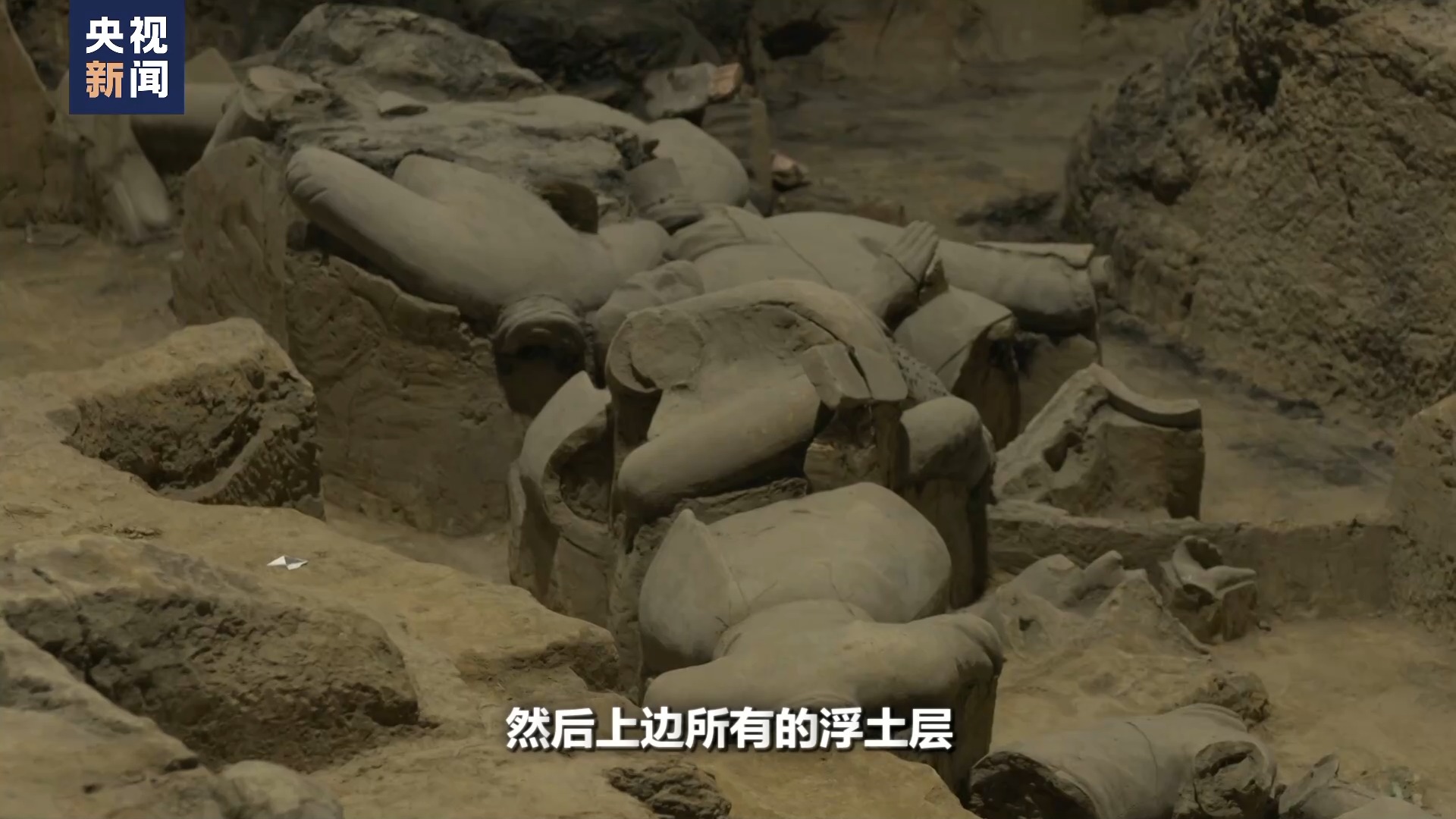 秦始皇帝陵博物院副院長 周萍:其實秦始皇帝陵博物院出土,不僅僅只有彩繪陶俑?,F(xiàn)在觀眾去現(xiàn)場去看的時候,最??吹降木褪菐追N材質(zhì),一種就是我們的彩繪陶俑,一種是坑內(nèi)的土遺址,一種我們銅車馬是金屬文物;其實在土遺址里面,有很多很多這種木質(zhì)的遺存。它這個就是我們這個隔梁在建的時候,實際上就相當于用木頭去搭了一個相當于小房子,把這些彩繪俑保存在里面。