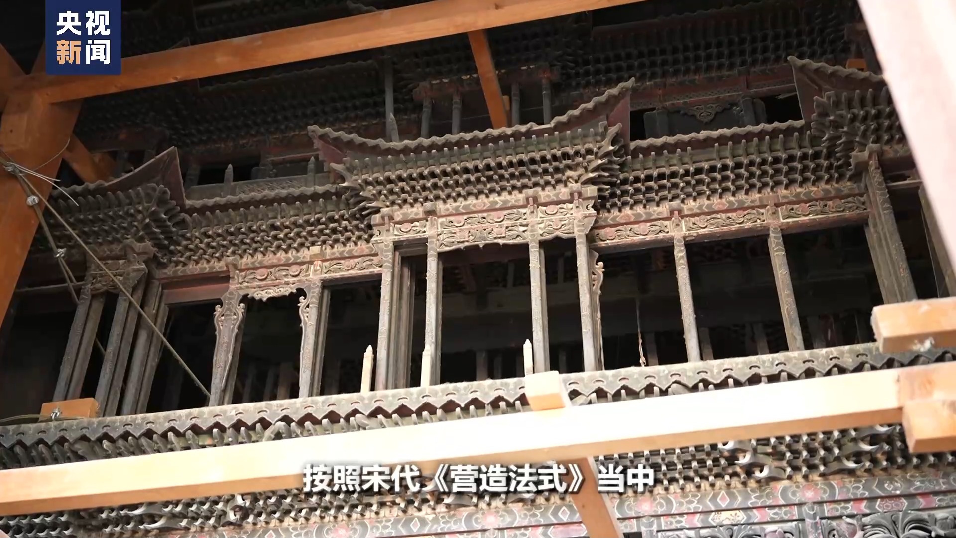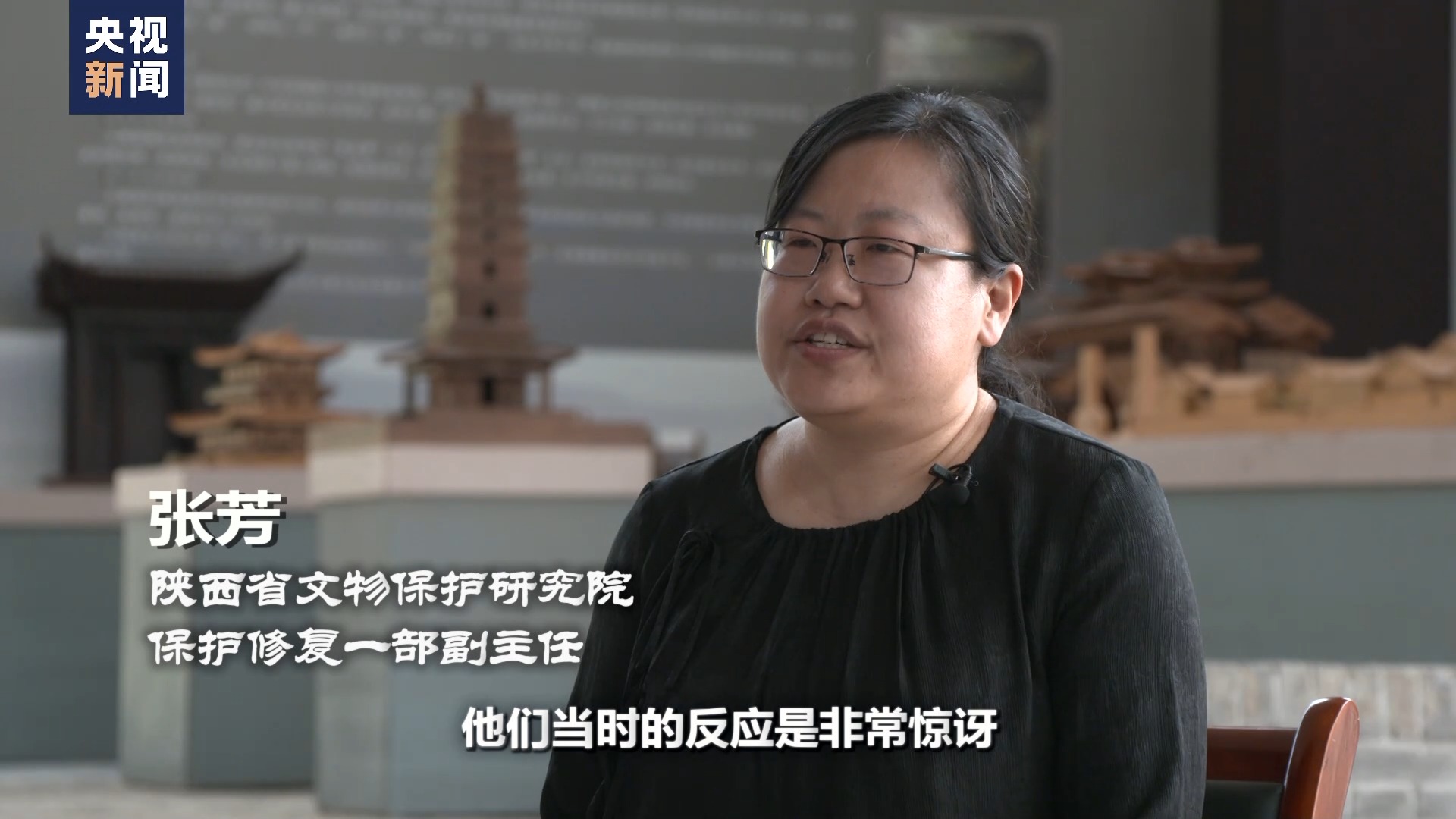 陜西省文物保護研究院保護修復(fù)一部副主任 張芳:他們當時的反應(yīng)是非常驚訝,因為這種純粹的,沒有用一根釘子的榫卯結(jié)構(gòu)層層疊疊,在上面天宮樓閣的一個呈現(xiàn)。他們在法國是完全見不到,他們也想象不到。