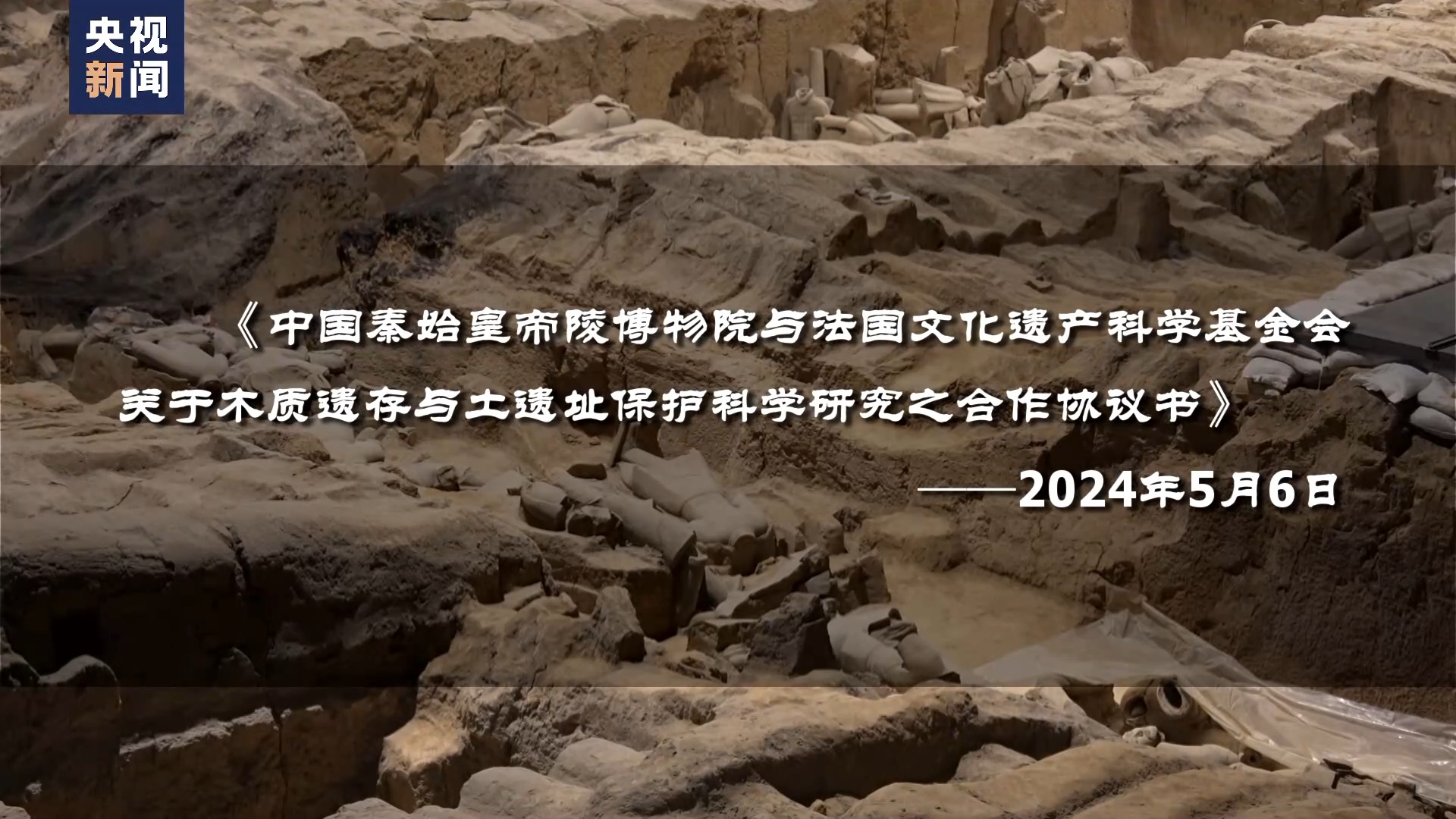 2024年5月6日,中法簽訂了《中國秦始皇帝陵博物院與法國文化遺產(chǎn)科學基金會關(guān)于木質(zhì)遺存與土遺址保護科學研究之合作協(xié)議書》。