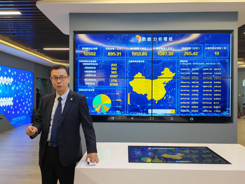 5月24日,上海股權(quán)托管交易中心黨委書(shū)記、總經(jīng)理徐軍介紹上海專(zhuān)精特新專(zhuān)板。新華社記者 桑彤 攝