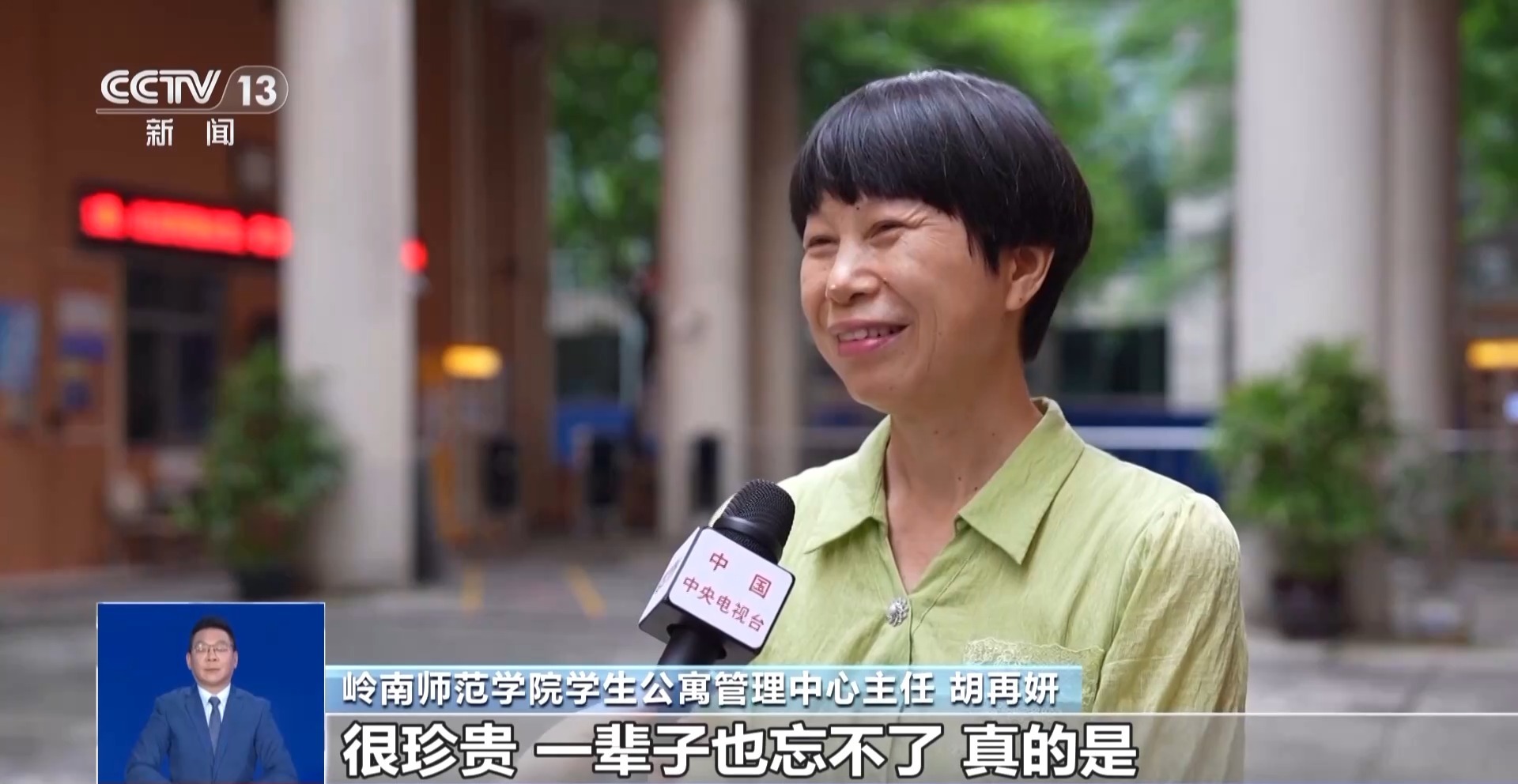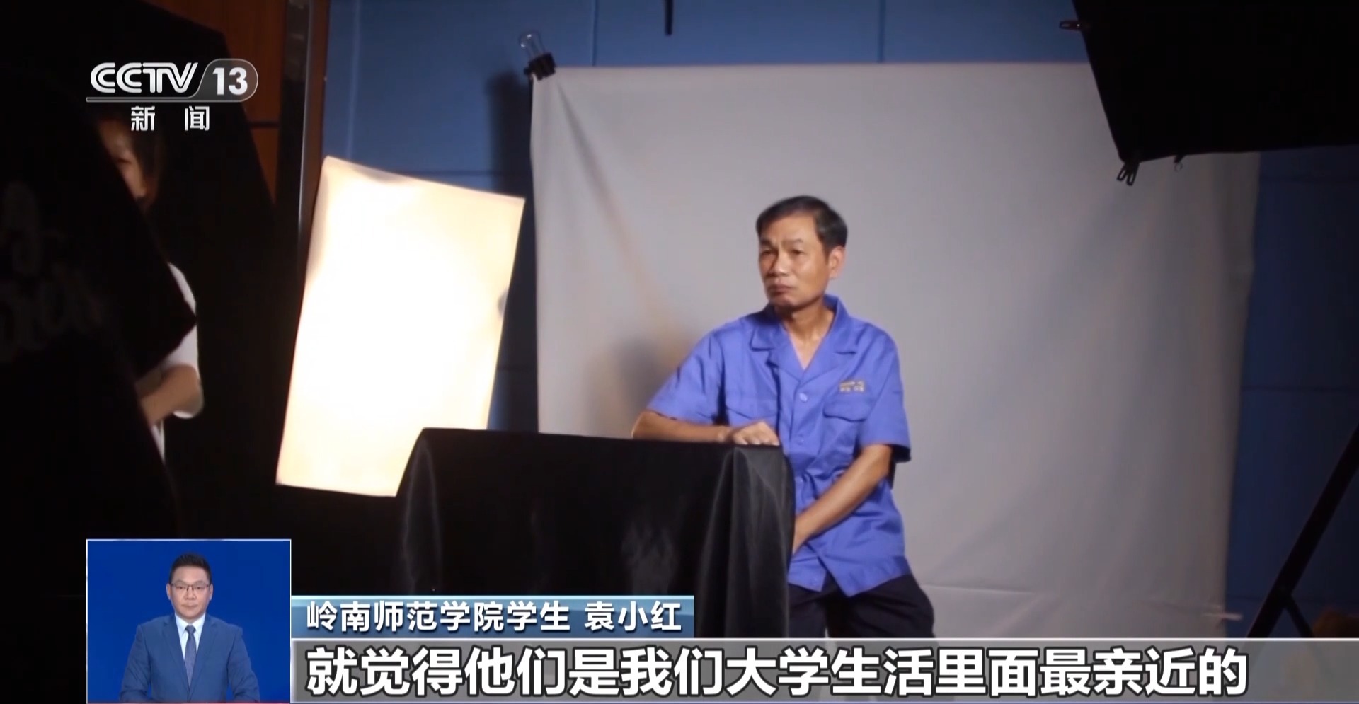 嶺南師范學(xué)院學(xué)生處思教科老師 林一帆:形象照是很有儀式感的,一方面我們學(xué)生會覺得,我們在回饋宿管阿姨(和叔叔),他們平時對我們非常好;另一方面,宿管阿姨她會覺得我這個職位是很有價值感的,是很有成就感的。