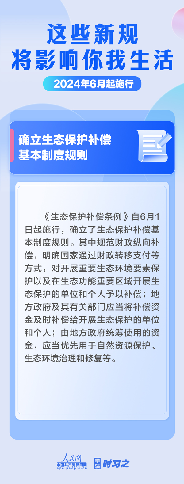 保障糧食有效供給;確立生態(tài)保護(hù)補(bǔ)償基本制度規(guī)則;規(guī)范保障海警機(jī)構(gòu)依法履職……6月起,這些新規(guī)施行,將影響你我生活。
