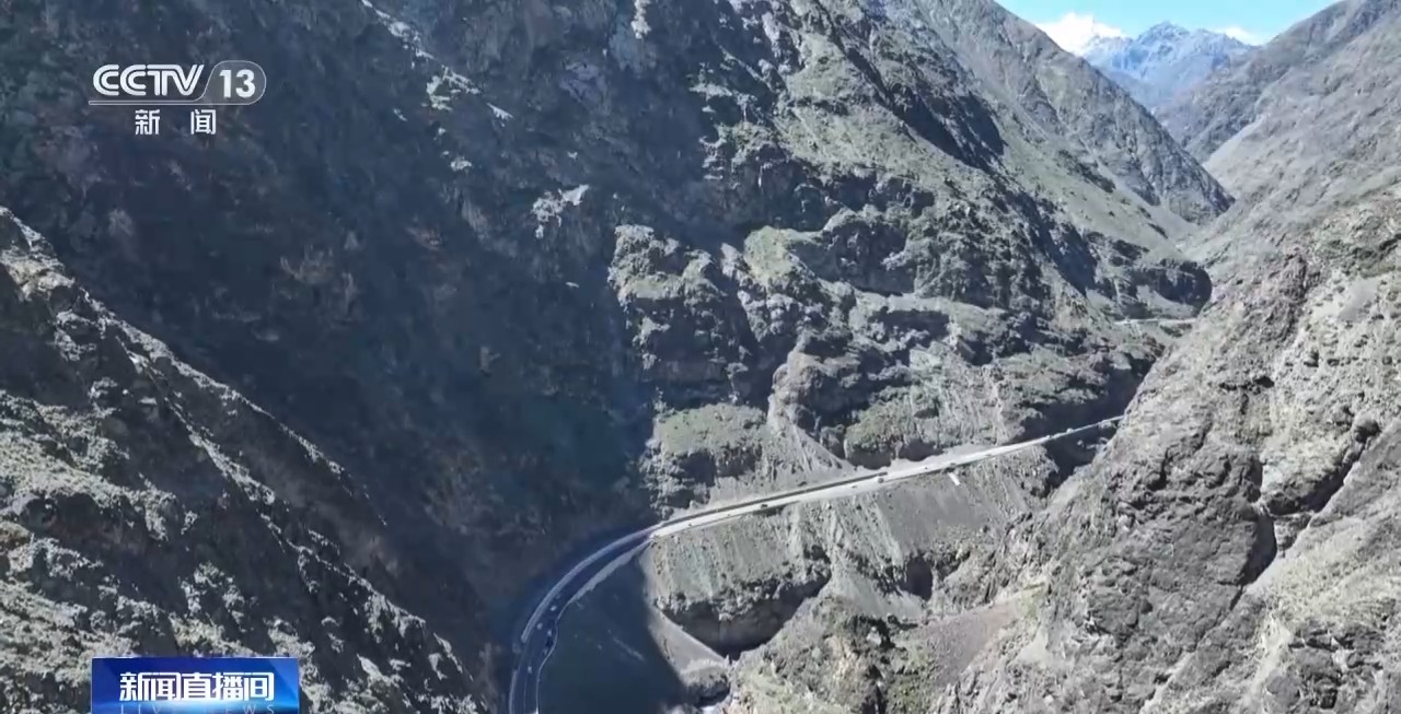 總臺記者 劉菲:這一路可以說是崖壁陡峭、巖石突兀,這一側(cè)是垂直接近90度的山體,上下的高差達(dá)到200多米。在這條公路上行駛,可以感覺到翻過一座險(xiǎn)要山峰,另一側(cè)就邂逅了高山草甸的綠意。