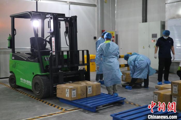 來(lái)自巴基斯坦的冰鮮水產(chǎn)品從喀什航空口岸入境,經(jīng)查驗(yàn)后入庫(kù)綜合性指定監(jiān)管場(chǎng)地。方禮 攝