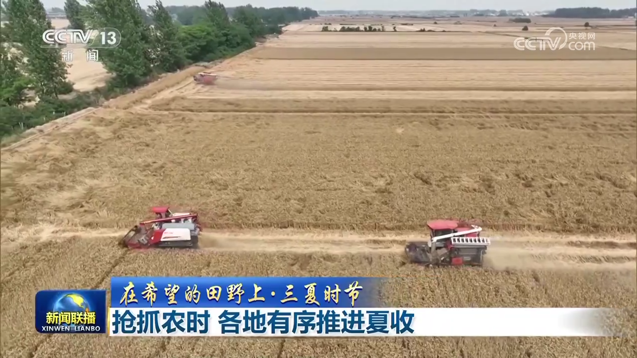 安徽小麥主產(chǎn)區(qū)收獲已過六成,在蒙城,當(dāng)?shù)爻浞掷没ヂ?lián)網(wǎng)、大數(shù)據(jù)、北斗導(dǎo)航等信息化技術(shù),搭建農(nóng)機(jī)作業(yè)指揮調(diào)度平臺(tái),可實(shí)時(shí)查詢農(nóng)機(jī)位置、農(nóng)機(jī)狀態(tài),隨時(shí)予以調(diào)度,機(jī)收作業(yè)區(qū)域做到定人、定地、定機(jī)械,讓麥?zhǔn)兆鳂I(yè)更高效。山東6000多萬(wàn)畝小麥陸續(xù)進(jìn)入收獲期,在濟(jì)南長(zhǎng)清區(qū),收割機(jī)來(lái)回穿梭,小麥?zhǔn)崭?、脫粒、秸稈粉碎還田一氣呵成,隨后玉米播種機(jī)下地,同步進(jìn)行玉米播種和施肥,實(shí)現(xiàn)夏收、夏播無(wú)縫銜接。