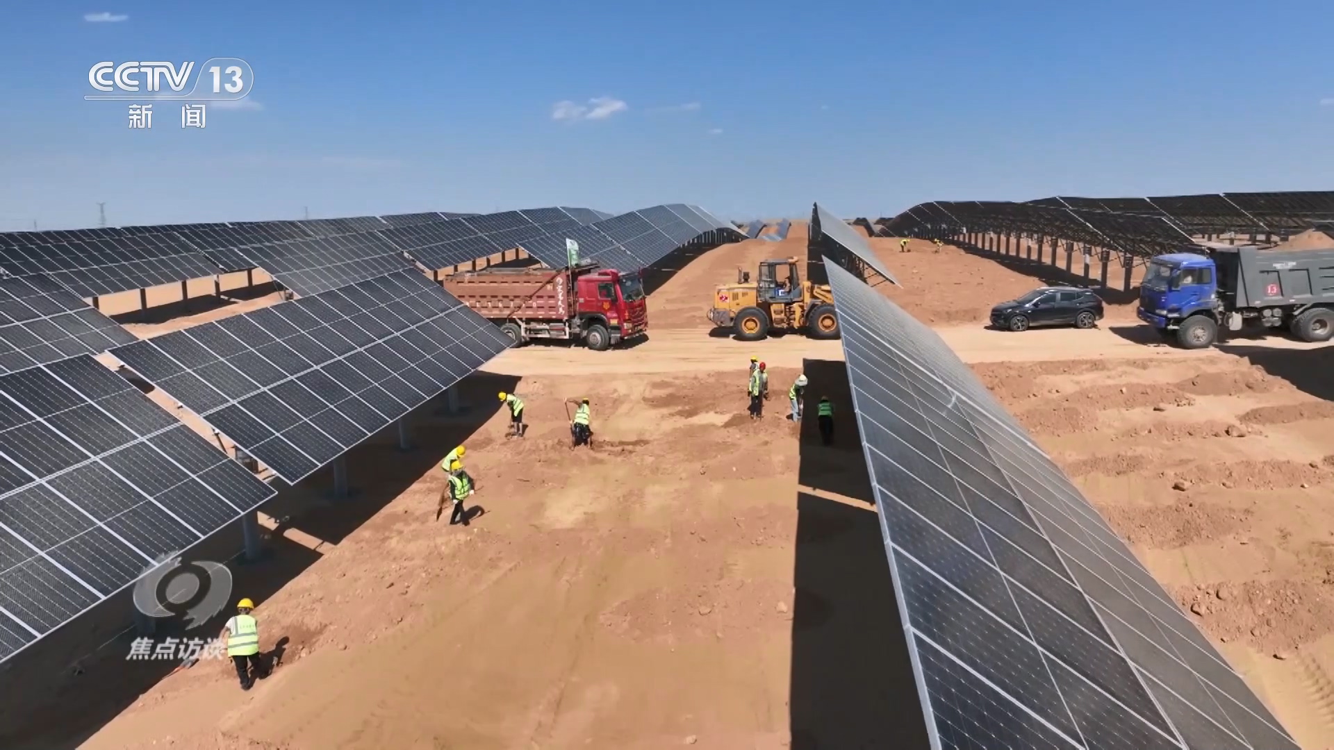 在內(nèi)蒙古庫布其沙漠北緣,一排排深藍(lán)色的太陽能電池板格外醒目。總投資115億元、占地48.7萬畝、光伏裝機(jī)容量13GW的新能源基地正在加緊建設(shè)。這個(gè)新能源項(xiàng)目是鄂爾多斯市防沙治沙的重點(diǎn)工程。沙漠、沙地地廣人稀,蘊(yùn)藏著巨大的風(fēng)能、太陽能資源。內(nèi)蒙古自治區(qū)“跳出治沙看治沙”,實(shí)施防沙治沙和風(fēng)電光伏一體化工程,統(tǒng)籌推進(jìn)增綠、增能、增收,力求取得1+1>2的效果。