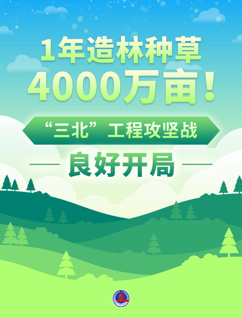 在我國(guó)北方遼闊的疆土上,一道綠色長(zhǎng)城正在不斷加固。國(guó)家林草局最新信息顯示,僅一年時(shí)間,“三北”工程攻堅(jiān)戰(zhàn)完成造林種草約4000萬(wàn)畝。