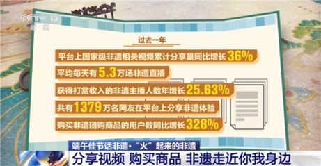社交媒體平臺近日發(fā)布的《2024非遺數(shù)據(jù)報告》顯示,過去一年,平臺上國家級非遺相關(guān)視頻累計分享量同比增長36%,平均每天有5.3萬場非遺直播,獲得打賞收入的非遺主播人數(shù)年增長25.63%,共有1379萬名網(wǎng)友在平臺上分享非遺體驗,購買非遺團購商品的用戶數(shù)同比增長328%。 某購物平臺數(shù)據(jù)顯示,今年前三季度,以“非遺”為關(guān)鍵詞的搜索量同比增長168%,“非遺”主題相關(guān)的團購訂單量同比提升245%。