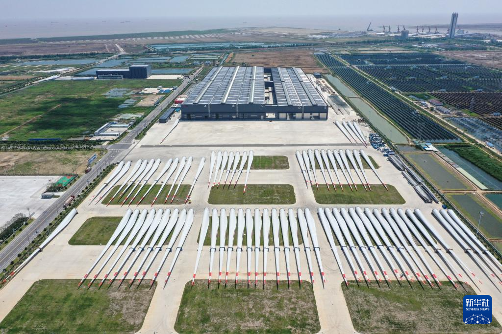 6月6日拍攝的位于射陽港低(零)碳產(chǎn)業(yè)園的射陽中車風(fēng)電葉片工程有限公司的外景照片(無人機照片)。 新華社記者 楊磊 攝